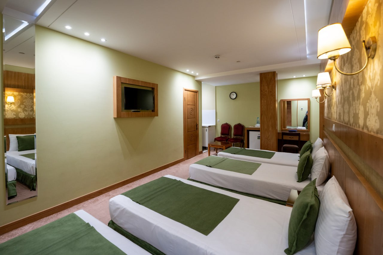 هتل مدائن مشهد قیمت منصفانهای را برای امکانات اتاقهای خود در نظر گرفته است. اتاقهای دوتخته، سهتخته و سهتخته فولبرد هر کدام با منوی خاص غذایی خود میتوانند گزینه قابل توجهی باشند. معمولاً تنها در برخی از اتاقهای هتل دارای سرویس بهداشتی فرنگی و برخی دیگر سرویس بهداشتی ایرانی است. ساعت تحویل اتاق 14 و ساعت تخلیه 12 است. شما برای رزرو هتل مدائن مشهد بهتر است بدانید که اقامت کودکان زیر 3 سال رایگان و کودکان 3 الی 5 سال، چنانچه از سرویس استفادهای نداشته باشند، میتوانند از تعرفه نیم بها استفاده نمایند. هتل مدائن مشهد فولبرد به سبب امکانات و خدمات خود بسیار مورد توجه قرار گرفته است. برای رزرو هتل مدائن در مشهد بهتر است به امکانات گفته شده، توجه بیشتری داشته باشید. امکانات اتاقهای هتل آپارتمان مدائن در مشهد شامل موارد زیر است: